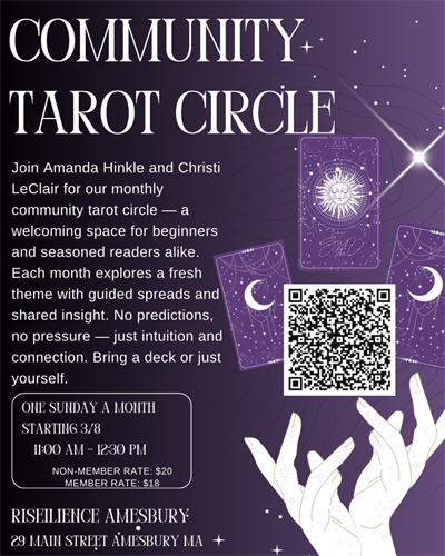 This monthly community tarot gathering is a welcoming space to deepen your relationship with the Tarot- whether you’re brand new to the cards or have been reading for years. Each session explores a different tarot theme so every month feels fresh and relevant. We’ll talk about the topic, pull guided spreads, and share insights in a supportive, down-to-earth way. No predictions, no pressure - just reflection, intuition, and connection. Bring a deck if you have one, or just bring yourself. Beginners and experienced readers are both welcome.